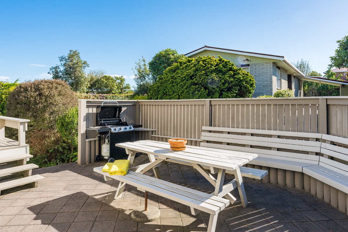 The Art House is a charming two-bedroom Lockwood home from the 1950s that is warm and inviting. Thoughtful touches throughout make you feel at home. Recently fitted with new double-glazed windows, it's exceptionally cosy. The heat pump and fire keep you warm. The back deck, basking in sunlight, is perfect for unwinding with a glass of wine and a good book. The lake and hot water beach are just a 10-minute walk away, offering endless exploration opportunities.