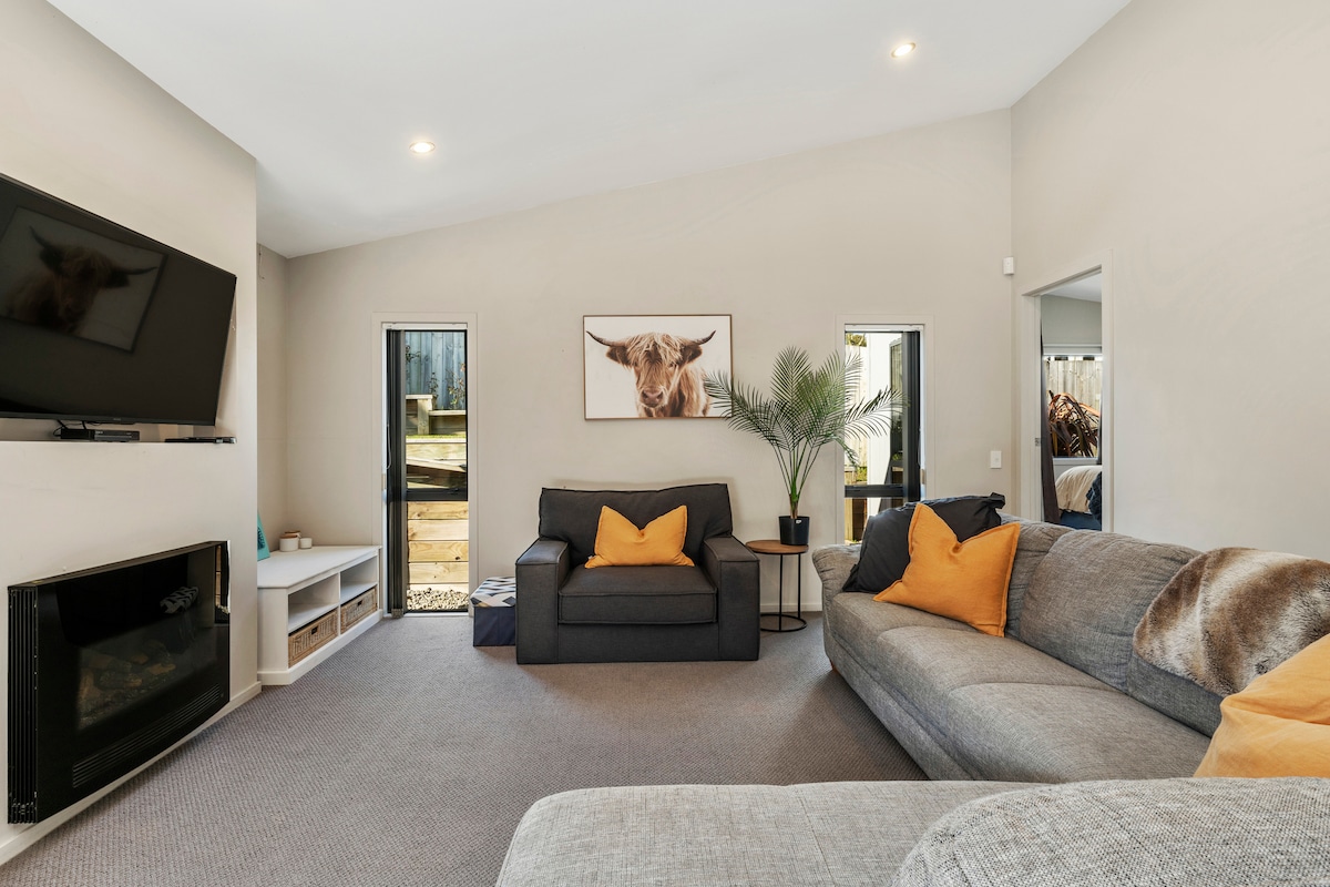 Newly built with wonderful outdoor spaces and off street parking. Fully fenced so can bring along a fur baby. A fabulous local bar and restaurant, hairdresser and takeaway shop within walking distance as is the lake. Peaceful area with glimpses of the mountains and lake. A 5 minute drive from the town centre. Easy access to all the highways from its central location. Additional guests have access to a roll out sofa bed.
