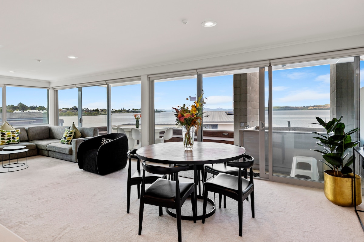 Built in 2017/18 this modern apartment-style property is your home away from home. Elevated and north facing, the living and dining areas spill onto a large, sheltered deck. Three generous bedrooms with new queen beds ensure a comfortable night's sleep. The large internal access garage provides for car and boat parking. Views of Lake Taupo, Taupo town lights and Mount Tauhara from upstairs living and deck. Newly added bonus: sit in the spa pool and watch the moon rise over Mount Tauhara