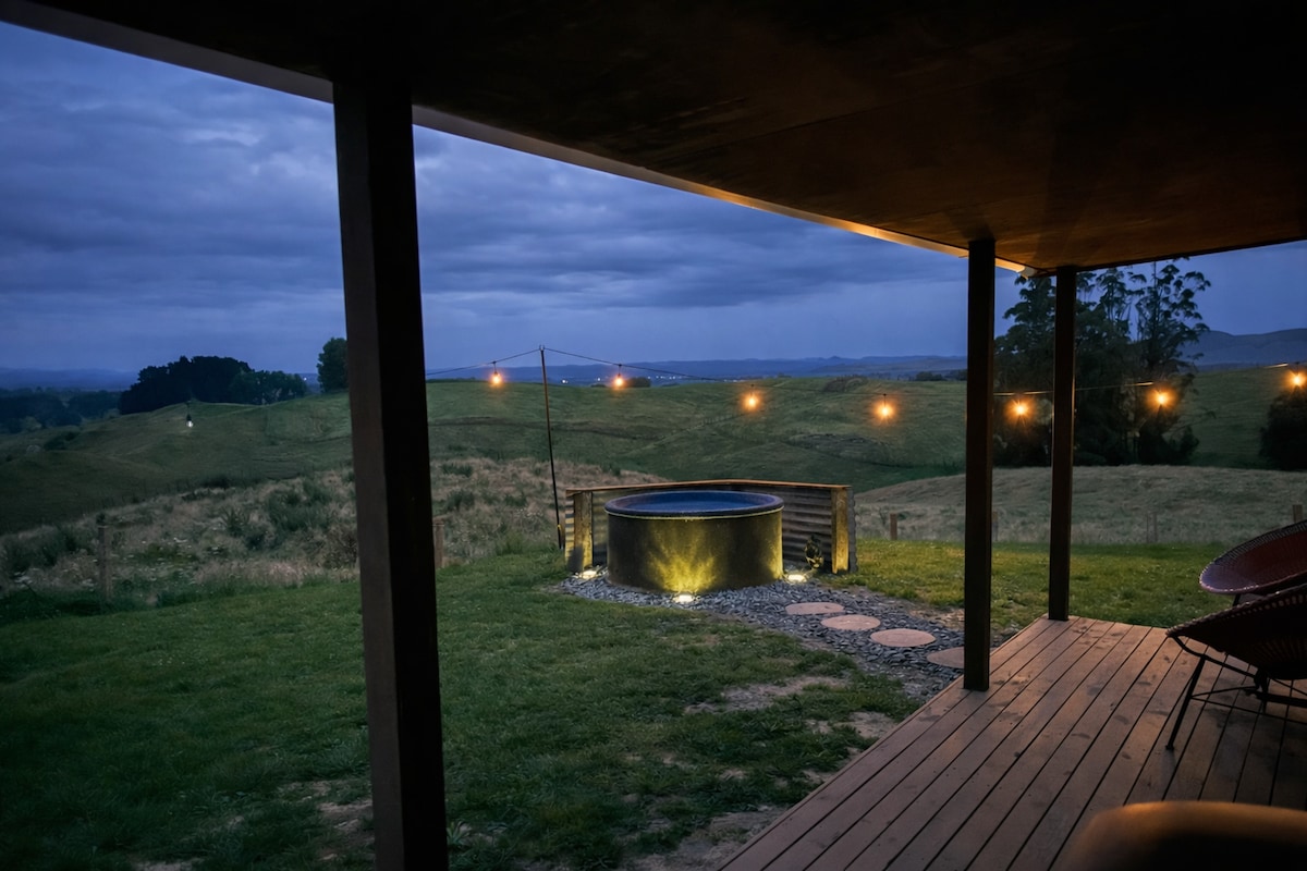 A small but special little place tucked neatly between rolling hills. Kawakawa Hut provides a simple but comfy getaway for two in a beautiful countryside. Close by lies the vegetable garden, and friendly cows graze just over the fence. Further out over surrounding farmland you can see Tongariros snow capped mountains in the distance, so sit back and enjoy. The hut is off grid and is built of repurposed materials so that your stay has a low environmental impact. Awarded BEST NATURE STAY, NZ 2023