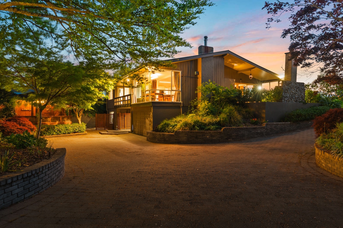 Take it easy in this unique and tranquil getaway located in Richmond Heighs, a peaceful neighbourhood with an excelent location. This is a sunny spot with a lot of outdoor space to enjoy nature. Relax and enjoy views of Mount Tauhara from the sunny living room and front deck. Reset your body in our beautiful sauna. Go for a canoe paddle or morning swim to lake Taupo, 10 minutes away by foot. Go for a walk to the closeby botanical gardens. Our chickens will share a piece of garden with you :)