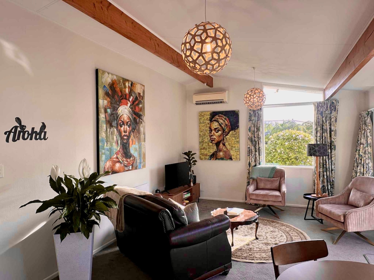 Located with a 5 minute walk to the town centre and access to restaurants and shops. This elegant house is immaculately presented. Furnishings and decoration have been carefully considered. A 2 storey, 3-bedroom home that is perfect for a couple or small family. Wi-Fi is available and a heat pump / air con depending on your needs. There is a great flow out to the yard which holds a studio with seating and games. Please note * there is only off road parking available for 1 vehicle.