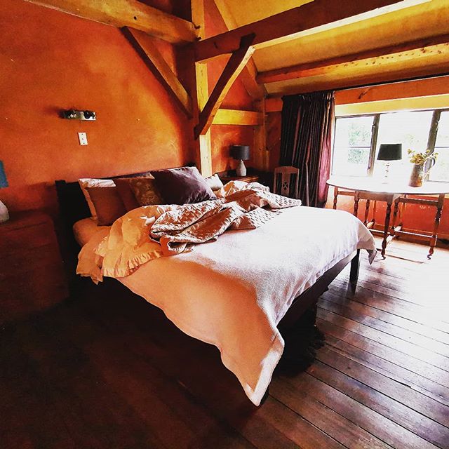 imagine the three of you travelling together being able to book a beautiful room in a Barn The kingsize and single beds fit sweetly into this modern rustic setting, with its linseed oiled plank flooring and wooden framed room. Its the gorgeous whitewashed table in the corner with an oversized mirror and pickings of hedgerow that make it so homely. Sharing the large industrial sized bathroom, with options to dine in the groundfloor with a real homemade dinner by candlelight is memory making
