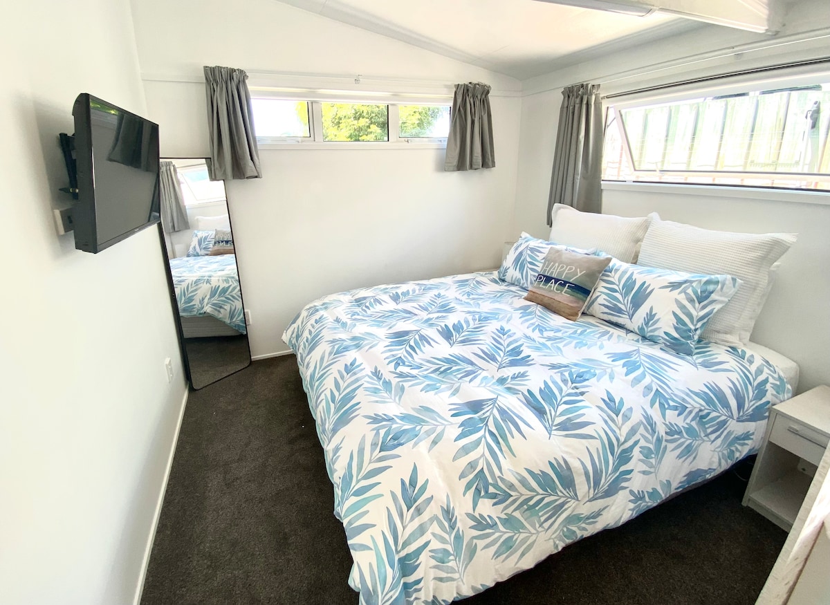 This studio-sized cabin is self-contained and approximately 100 meters from the main house. It has a very comfortable Queen-size bed with an electric blanket for colder months. A spacious deck with waterfall views and walnut trees compliments the cabin. It is situated on a 20-acre rural property, with a 20-minute drive to downtown Tauranga and a 10-minute drive to Bethlehem and Tauriko Crossing, offering dining and shopping options. Continental breakfast is included. Uber Eats also delivers!