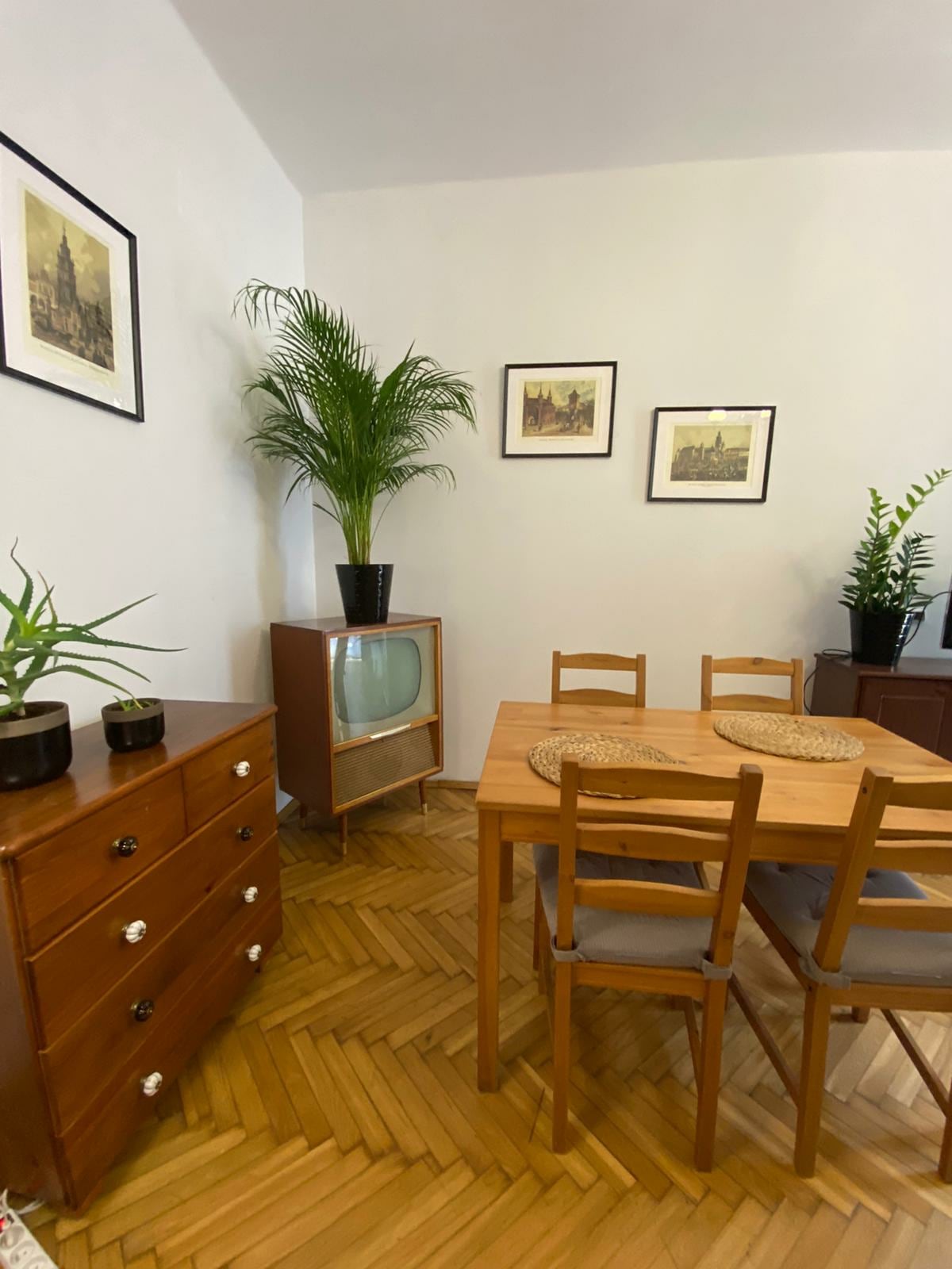 The apartment is fully equipped, big living room, bedroom, kitchen, and bathroom with a bathtub. There is a large balcony accessible from all the rooms. Quiet place great, for a stay for people liking quiet and peaceful space. There is a washing machine and tumble dryer in the bathroom. The apartment is on 3rd floor up the stairs, just beside the Iconic historical Old Synagogue, so all the main monuments of Kazimierz are in the reach of few minutes walk. No TV, but books:)