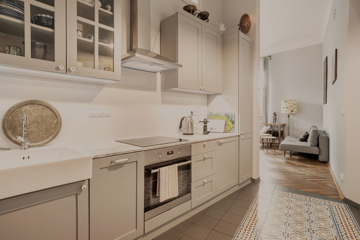 Authentic, elegant, spacious flat (55m2) with high ceilings (3.70m), beautifully restored antique furniture, comfy king-size bed, custom-made kitchen furniture with a marble worktop. A real flat, not a hotel! Located in a 19th century town house with a view in the heart of Podgórze. 1 bedroom, a living room, free WIFI, 40" flat-screen satellite TV, dishwasher, cooker, oven, fridge, iron, washing machine, tumble drier, hair drier. A real home away from home! You'll love it! Our guests do!