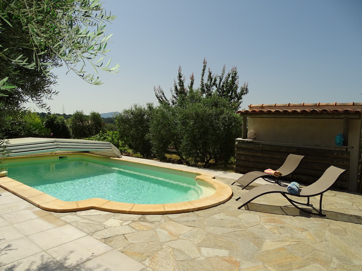 Maison insolite au fond des bois. En Provence verte, lovée entre forêts, oliviers, garrigue et vignes. Feu de bois en hiver, piscine, terrain de pétanque, petite sieste, moment de méditation, de yoga ou lecture sous la pagode dans la forêt. En pleine nature dans un environnement exceptionnel. Cabanon tout confort et climatisé, au calme pour se ressourcer et se déconnecter. Stationnement. Clôture pour nos amis les animaux. Vacances idéales pour visiter des lieux magnifiques.