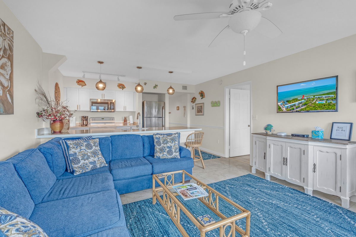 Welcome to our remodeled costal 1BR 1 Bath condo nestled in the premier oceanfront complex in Tavernier, FL. Escape to paradise and enjoy the wonderful Ocean views from the private balcony while just a few steps away from the sunny private beach, marina, minutes away from restaurants, shops, and attractions. ✔ Comfortable Queen BR ✔ Open Design Living ✔ Fully Equipped Kitchen ✔ Balcony ✔ Smart TVs/WI FI ✔ Complex Amenities (Pool, Hot Tub, Marina, BBQ, Sports, Free Parking) Learn more below!