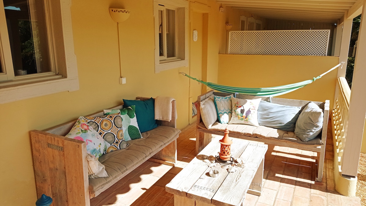 Large suite with queen-size bed, private shower room, and WC on the ground floor. Travel cot and high chair available upon request. An additional bed (70x190 cm) for children up to 15 years old is available in same room. Large private terrace with deckchairs, tables and chairs. View of the garden and valley. Ideally located for exploring the Algarve's typical attractions. A car is required for travel. COOKING IS NOT AVAILABLE on site. #motorcycle #bikers welcome.