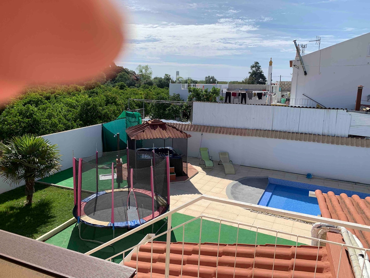 In our rural accommodation you can enjoy pleasant family moments. You have at your disposal a typical Algarve house with 1 double bedroom, 1 bedroom with 1 bunk bed with a double bed below and single above, living room with equipped kitchen, bathroom with shower, air conditioning, barbecue, laundry, private parking, private jacuzzi and common areas: swimming pool, garden, playground and games area. The maximum 5 people, with a maximum of 4 adults. The rooms are interconnecting.