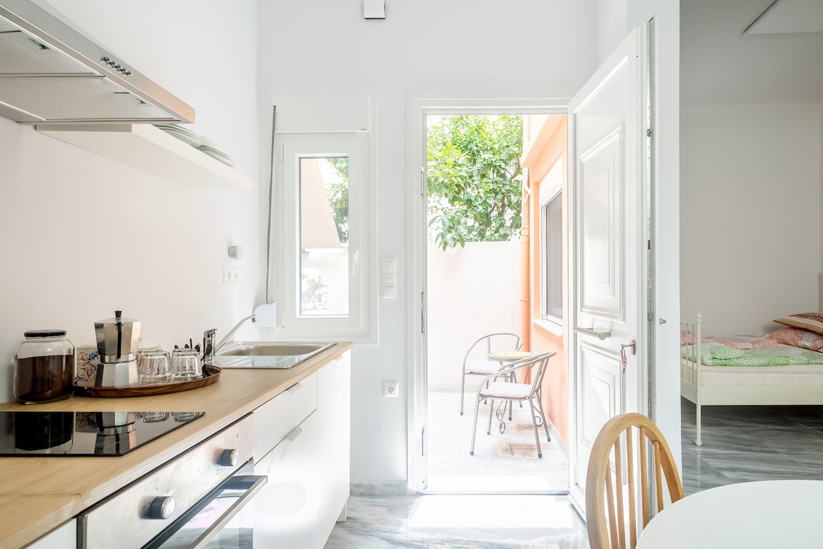 Minimalist & super central studio in walking distance of all major sights. Quiet & bright, on the 3rd floor facing a courtyard. Carefully renovated - restoring it's original mosaik & wooden floors from the 60ies while adding industrial design elements. Functional kitchen & dining area plus a sunny balcony. Located in Ano Petralona, bustling with quality restaurants & bars but very few tourists (yet). 80 metres from Petralona metro station, 1 hour door-to-door from the airport. Come and explore.