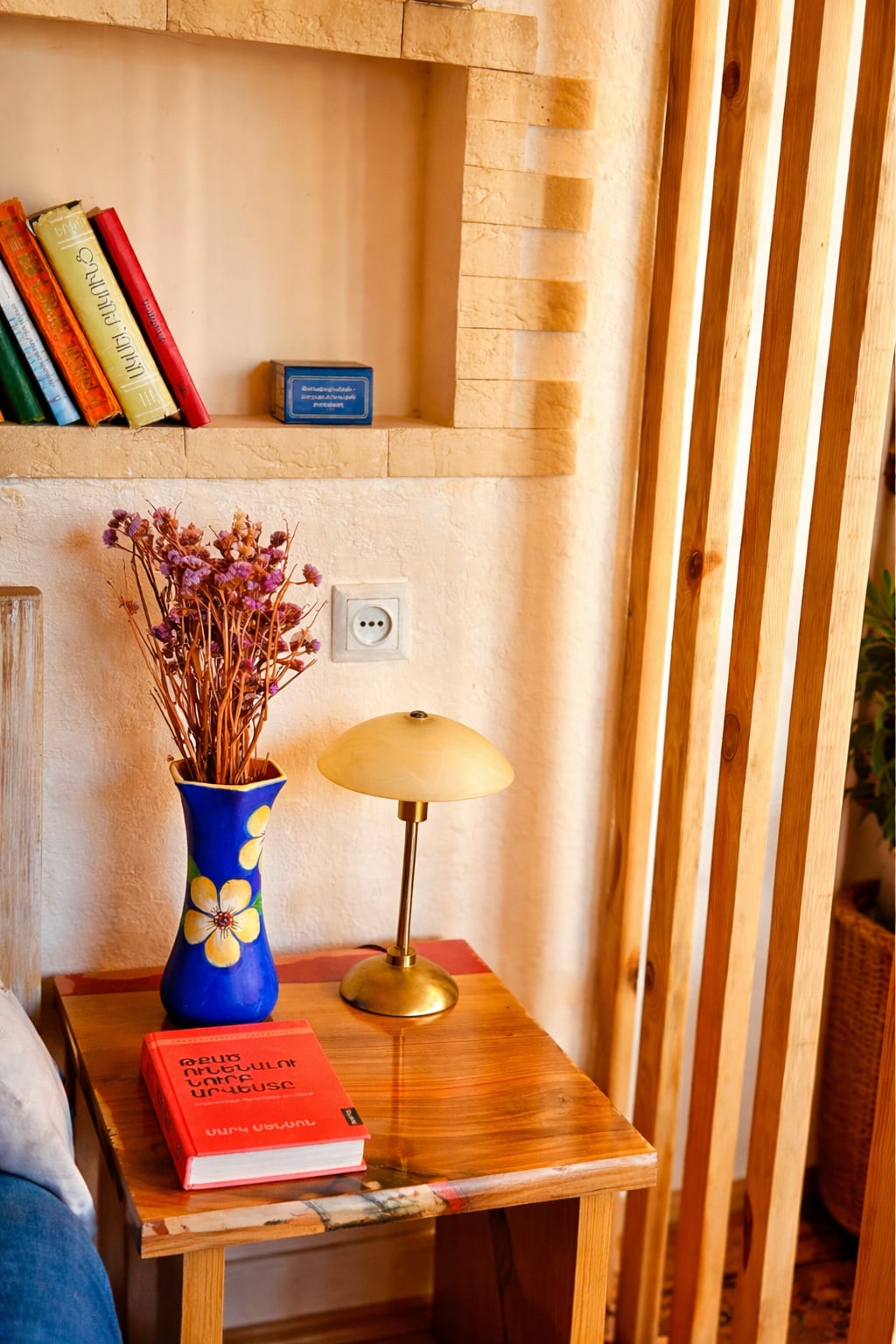 Небольшой дом в Иджеване — ваш отдых на лоне природы . Представьте: вы просыпаетесь под пение птиц, пьёте утренний кофе на свежем воздухе в тени деревьев, читаете книгу в гамаке․ Во дворе есть кролики, качели, беседка и мангал для шашлыка. Домик рассчитан на 2–3 человек. Отапливается уютной печкой на дровах. Здесь вы сможете не только насладиться теплом и атмосферой, но и приготовить картофель на печке проведя по-настоящему тёплые и душевные вечера. В саду находится только этот домик.