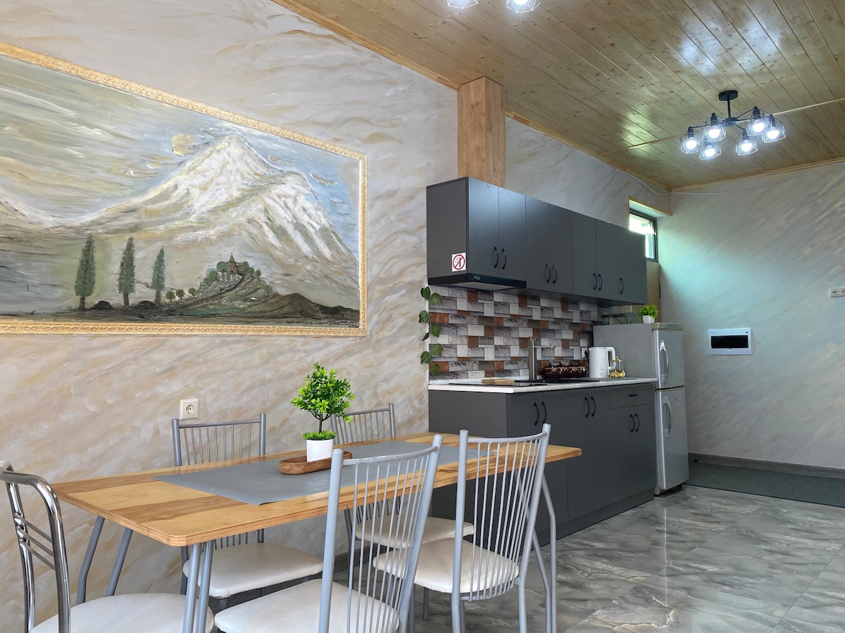 Experience the allure of Sayat-Nova 24 in picturesque Dilijan. Our guesthouse boasts two cozy bedrooms, a spacious living room, fully-equipped kitchen, and modern bathroom for your comfort. Step outside to enjoy the warmth of the fireplace, indulge in a barbecue at our designated area, or relax under the charming gazebo. Whether you're seeking adventure or tranquility, Sayat-Nova 24 offers the perfect retreat amidst nature's beauty.