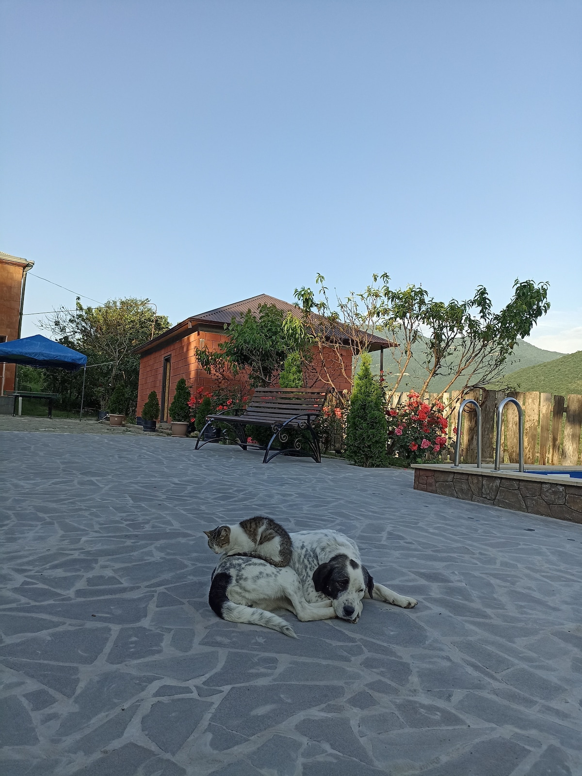 Дом находится вблизи леса, рядом с коттеджем водопад из природного камня, гидромассажное джакузи. которое нагревается до 40 градусов, джакузи работает зимой можно сидеть в джакузи зимой и пить вино под снегом․ На кроватях ортопедические матрацы и гипоалергенные подушки, каждому гостю предоставляется зубная паста ,зубная щетка, полотенце, шампунь, тапочки. В кухне есть все необходимое. Около дома удобное кресло сидя на котором можно наслаждаться видом на горы и дышать чистым горным воздухом.