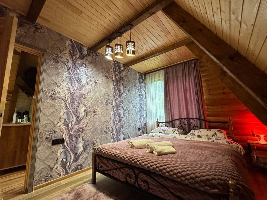 The cottage is located right on the riverbank and features an open balcony with views of the river, the forest, and QarUp. In addition to a double bed, the cottage includes a fold-out sofa that can accommodate 2 more guests. Breakfast is also included in the price.