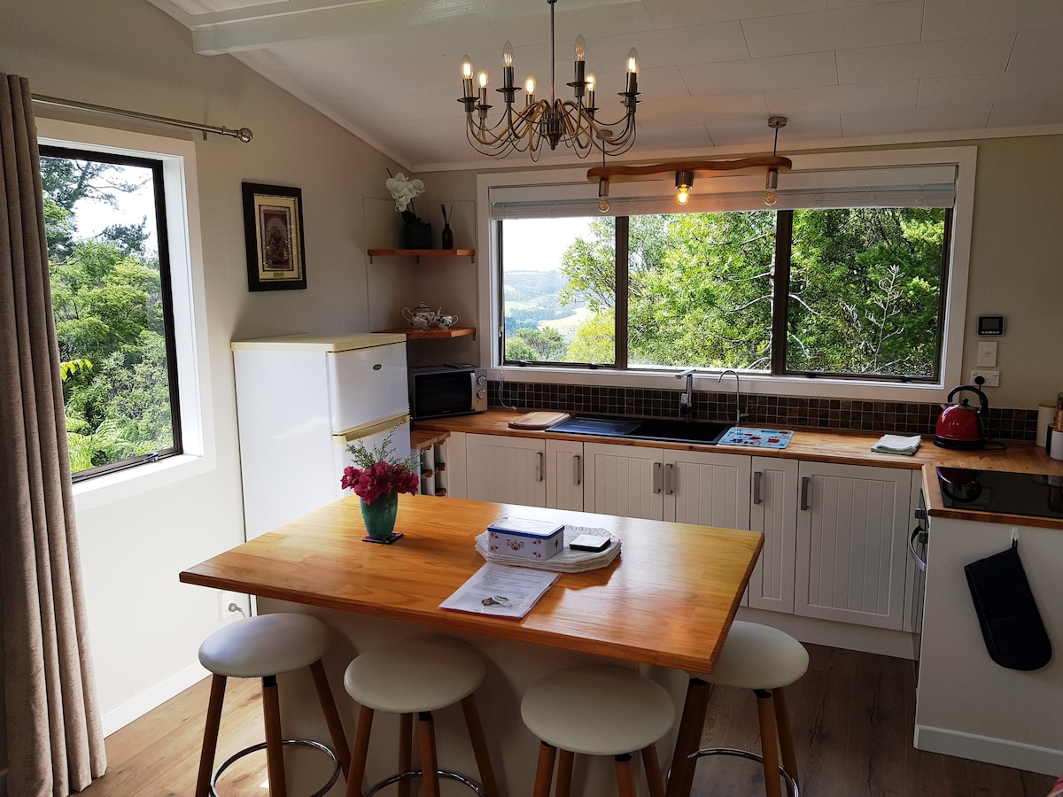 This tranquil retreat 7 mins from the historic village of Puhoi and 8 mins from SH1 has all you need for a relaxing, private & comfortable getaway. Easy driving distance to beaches, bush walks, kayaking & the famous Puhoi pub. Or simply relax, enjoy the birdsong, views, sunsets, a coffee or wine on the deck, star-gazing. Well set up for self-catering with induction hob, oven, fridge/freezer, microwave. Cosy wood fire in winter. Hosts live nearby and are very happy to provide any help.