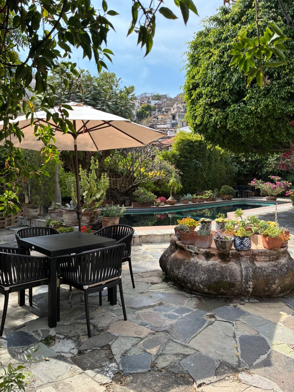 Charming Terrace Apartment with Breathtaking Views Stay in our cozy one-bedroom apartment, perched on the terrace of our home in the heart of Taxco. Fully equipped, it features a kitchen, private bathroom, and a bedroom with a twin bed. The living space includes a full-size futon, chaise lounge, fireplace, and a TV with streaming capabilities. Gorgeous views of Santa Prisca and Cristo, complete with a grill and patio furniture. Walking distance to restaurants, the Zócalo, and silver markets.