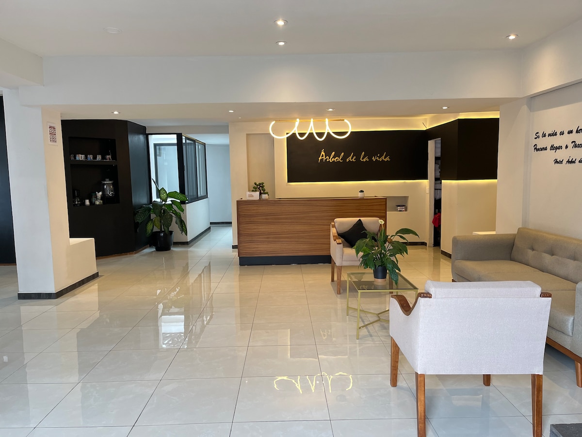 Disfruta de una acogedora habitación diseñada para brindar una experiencia única y relajante, nuestra prioridad es ofrecerte un servicio de calidad profesional.