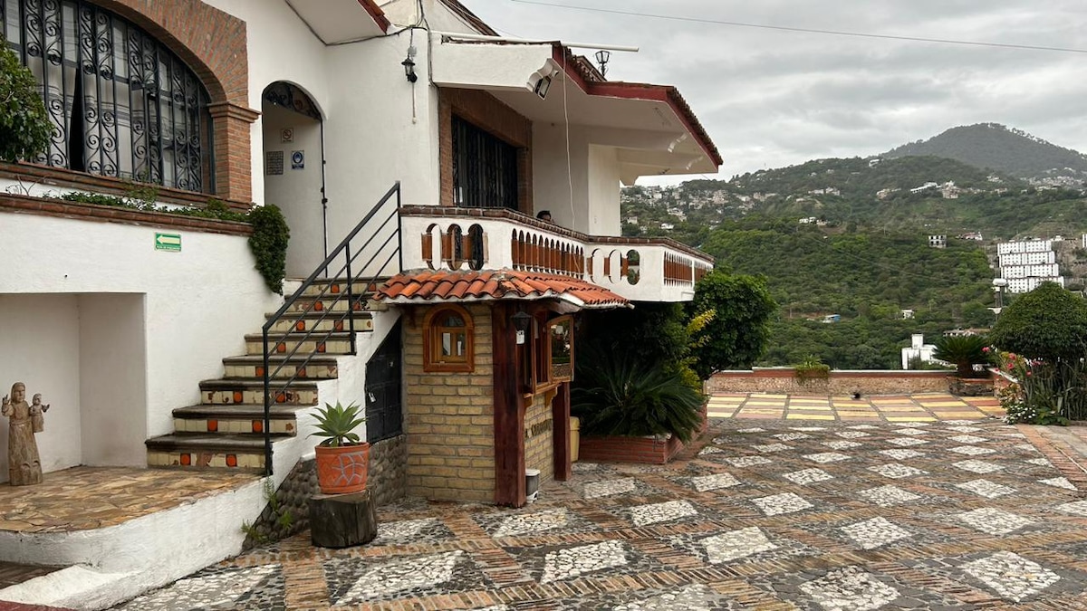Increíble cuarto a un minuto del zócalo y la catedral Principal de Taxco. Cuenta con baño independiente agua caliente ventilador. Muy iluminado. Decorado sencillo y acogedor excelente para una estancia cómoda y confortable.