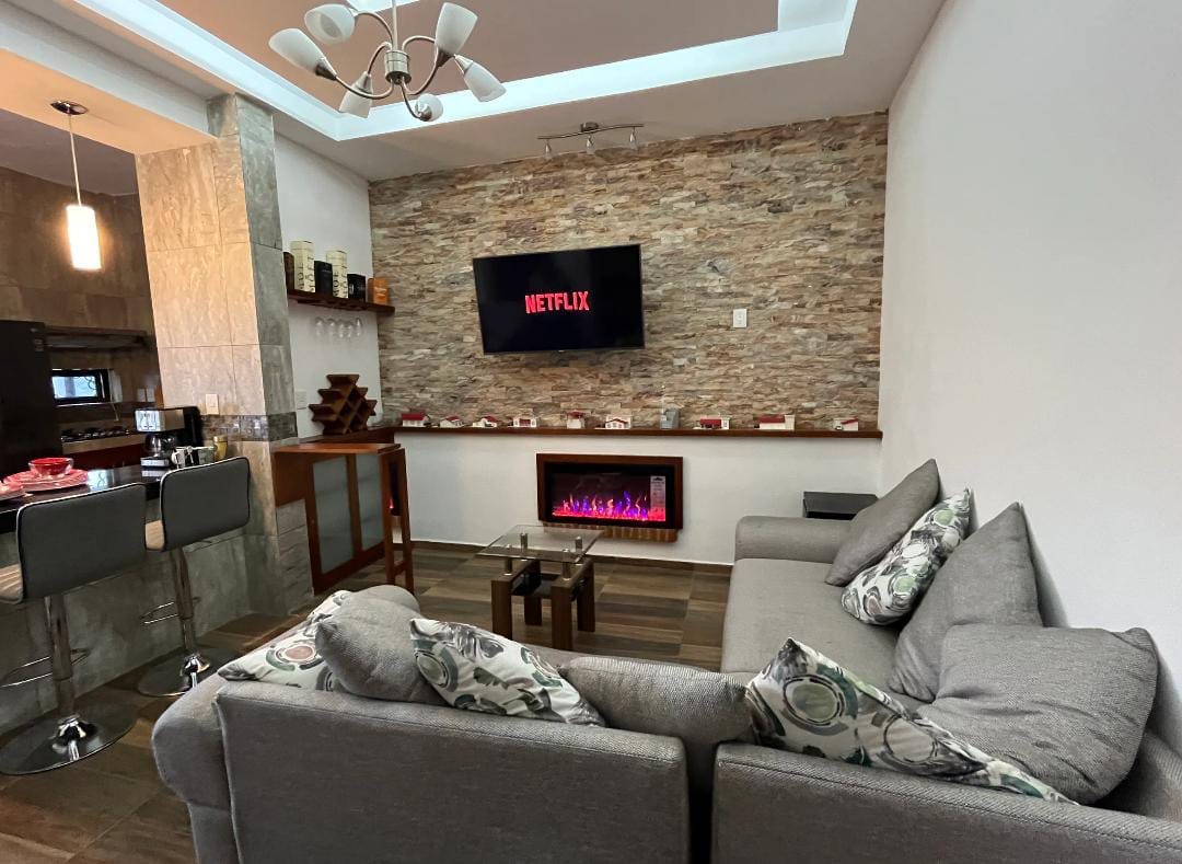 Bellísima casa con Inigualable vista, detalles elegantes y estacionamiento. Espacio para trabajar, internet privado y Smart TVs. El espacio es absolutamente tranquilo, excelente ubicación, amplia, con todo lo necesario para estadías largas, un relajante fin de semana en familia, con amigos o para una visita de negocios.