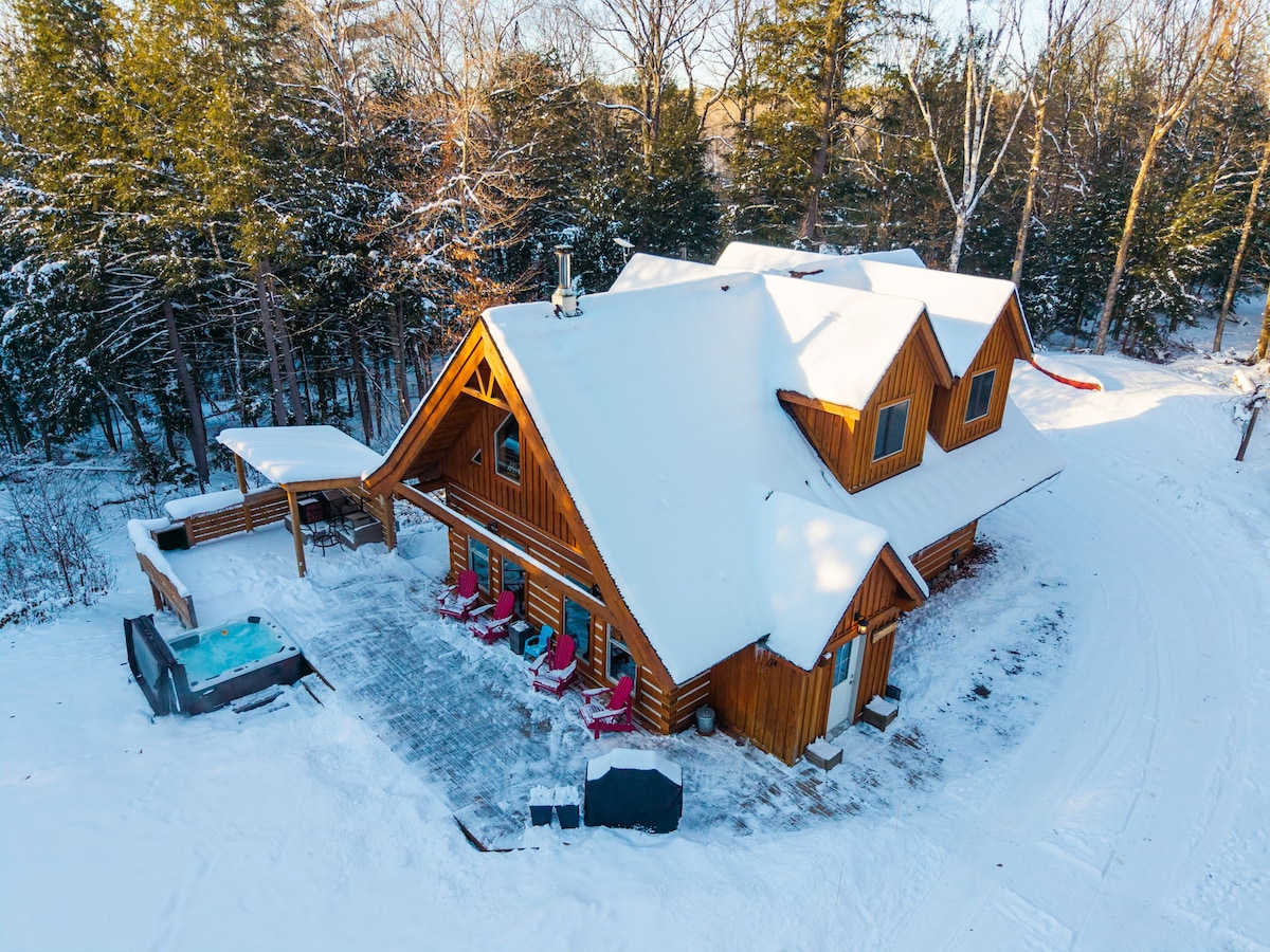 Hidden amongst the trees in the middle of Muskoka, this Hemlock log cabin boasts high ceilings and a true "cabin in the woods" feel. Its not hard to relax and unwind with a coffee in front of the fire, or go and explore along the private forest trails (1-2k of walking trails). As well, downtown Bracebridge is a convenient 10 minute drive away with all amenities. There is a veggie garden on the property and depending when you come you can pick away at it :) Pets are welcome in the home!