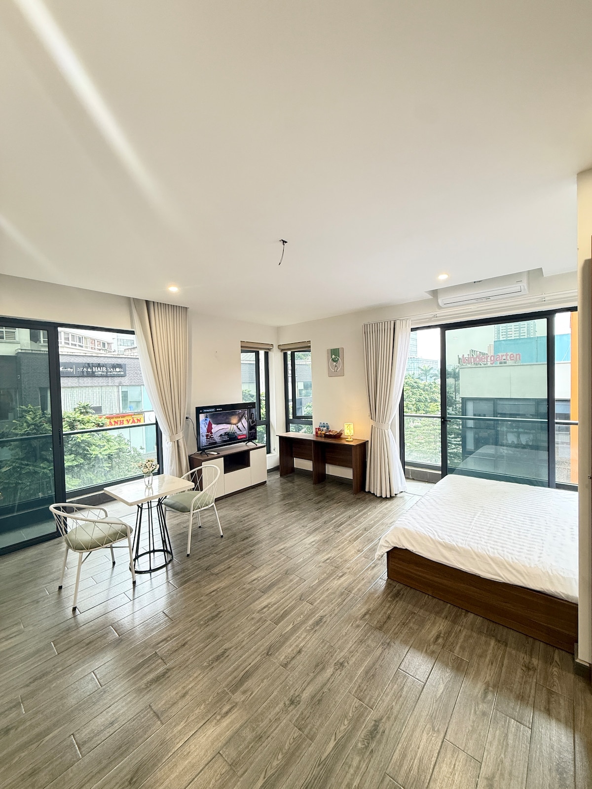 Brand New & Comfortable studio apartment - Airy space, just step to West Lake side (30meters) - Natural light with big window - Private bathroom & kitchen - Air conditioner - Internet Full HD TV - Free motor bike parking - Convenient travel, 20 minutes from the Airport - 3 minutes to MiniMart, Restaurant, Bar, Cafe shop... - 20 minutes to famous places: Hanoi Old Quarter, Hoan Kiem Lake, Ho Chi Minh Mausoleum, Temple of Literature, St. Joseph's Cathedral Hanoi, Westlake Flowers Valley...