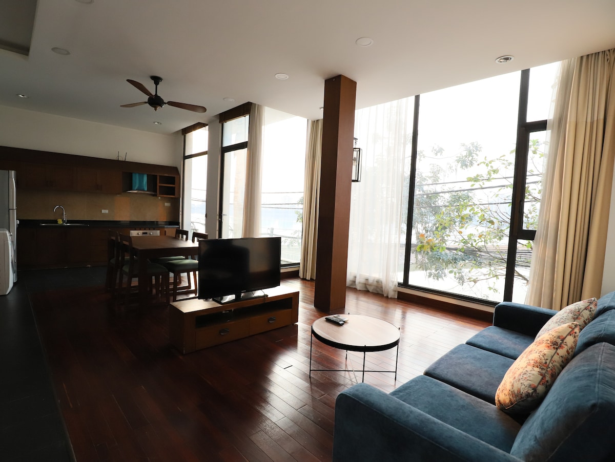 This private, fully furnished apartment is located on the 3rd floor of a building with convenient elevator access. It features a well-equipped kitchen, a modern bathroom, and a spacious bedroom fully furnished. Located on an island in Trúc Bạch Lake, near West Lake, the central location ensures easy access to the Old Quarter and city’s best attractions within walking distance. The area can be noisy during weekends but safe and have a varieties of restaurants, food shops and street food.