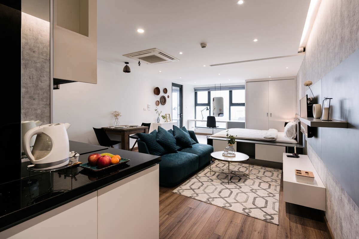 Hello sunshine, your 35m2 studio comes fully furnished with private bathroom & kitchenette and balcony. Free fast and stable Wifi (250Mbps download/upload speed). Premium filtered soft water for the most sensitive skin. Powered by solar energy. Quiet location for deep night sleeps. Free on-site parking. Free cleaning once a week. Fully accessible with lift in the building. Gym on the rooftop garden. Close to West Lake, famous street food & convenience stores. Come to our Eco nest today!