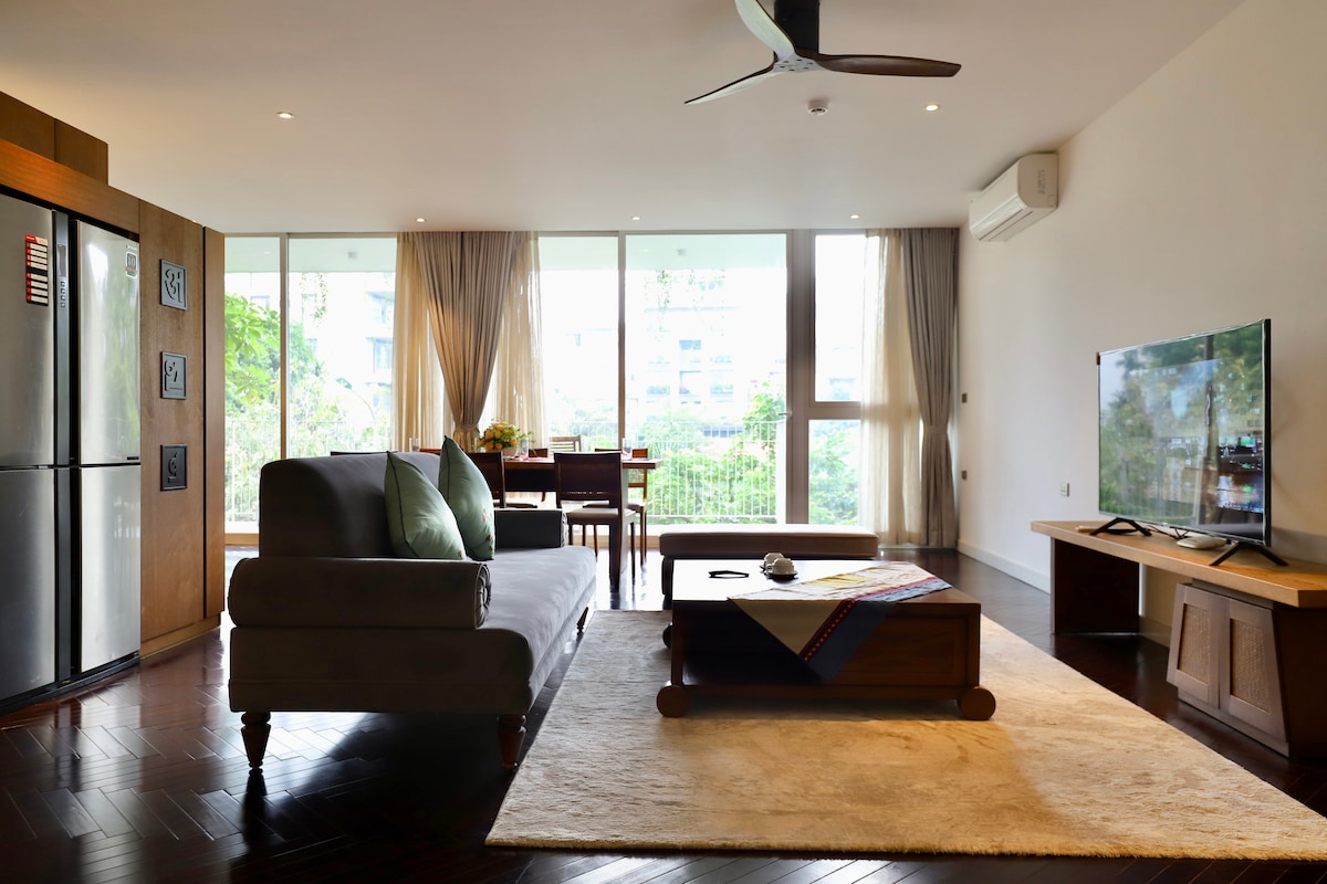 Take it easy at this unique and tranquil getaway, our new fully furbished 3 bedrooms, 170m2 apartment will bring you spacious, peaceful serene atmosphere. With only 2 mins walking to Westlake, you can enjoy many restaurants, coffee shops, and amazing views. Emerging separately from the crowding Hanoi city, our building is a convergence of modern and minimalism architecture that will bring you resilience, equilibrium and novelty.