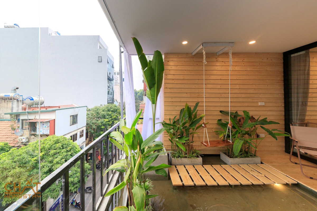 - Ideal for both business travelers and tourists. - Situated just a 30-minute drive from the airport and a quick 15-minute trip from the Old Quarter, it is nestled in a quaint alley within a vibrant expat community. - Area features numberous cafes, restaurants, and salons, providing a lively yet serene escape on a peninsula surrounded by Westlake with minimal traffic. - Furniture, made from reclaimed wood in our workshop, highlights environmental sustainability and local craftsmanship.