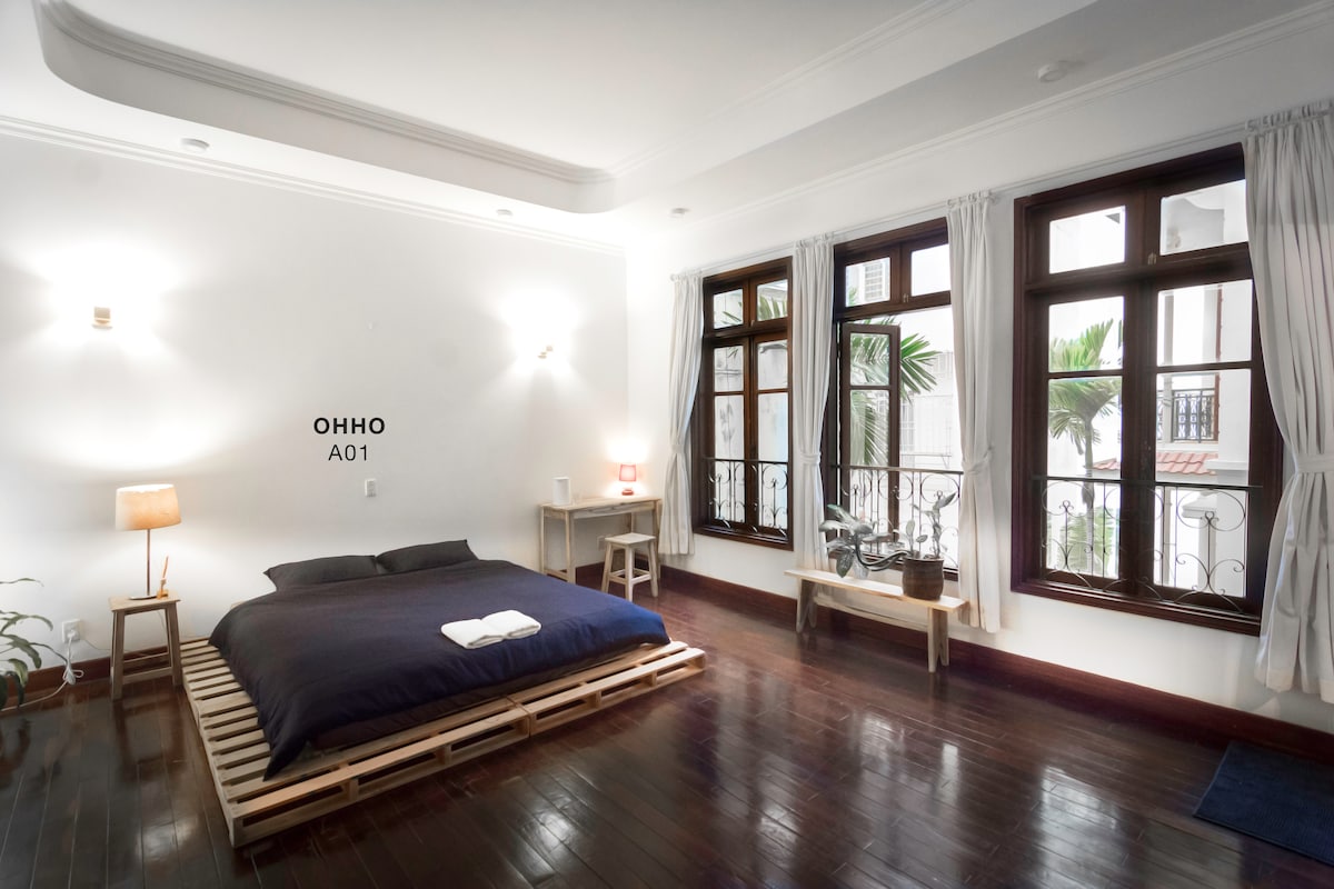 A cool and cozy room inside a preserved heritage French villa. Surrounded by tall trees, gardens, and indoor plants, the space stays naturally cooler, an oasis in Hanoi’s warm weather Pinterest-worthy decor, soft lighting, and a peaceful ambiance. - Quiet, friendly neighborhood - Surrounded by trees and lush gardens - Washing machine & dryer - Full kitchen - 5-minute walk to West Lake - 30 minutes to Noi Bai Airport - 10 minutes to Old Quarter