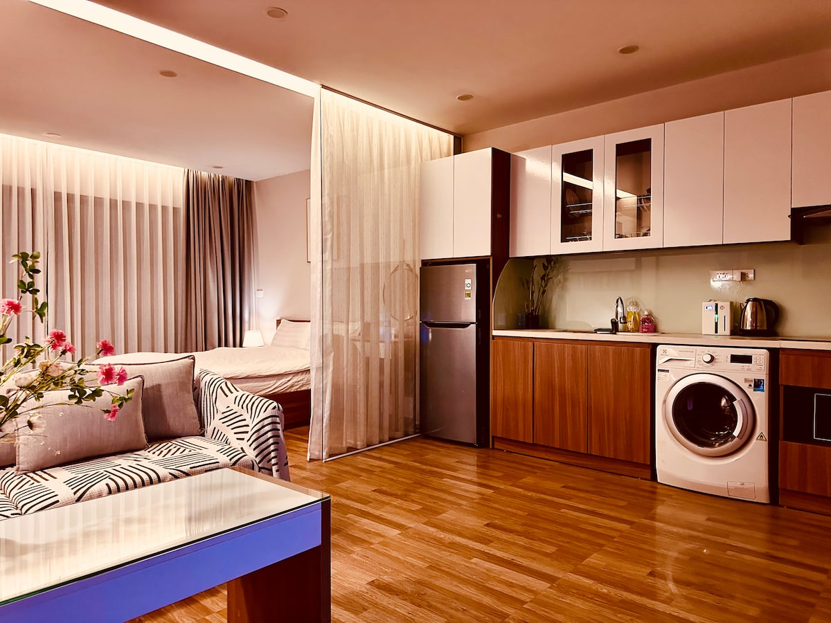 💙Welcome to you. 🌇The building is located in the quiet West Lake area, filled with natural light. Modern design, spacious space, suitable for remote working/long-term stay. ✨Amenities: 2 desks, soft sofa, Smart TV, high-quality mattress, large wardrobe, dressing table, hair dryer. 🍽 Convenient kitchen: Fully equipped with appliances, washer/dryer and range hood. 🌍Ideal location: Ideal place to exercise, relax. 10 minutes to Old Quarter, close to amenities, restaurants, cafes.