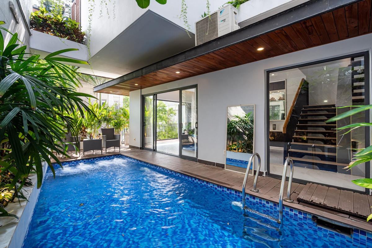 Charming Stylish Local House In vibrant Saigon, this stunning townhouse, praised by Dwell (USA) and local design press, offers a unique stay. Its split-level design and sunray-inspired roof flood the space with light. A charming courtyard with greenery creates an urban oasis. The rooftop is perfect for stargazing. Enjoy a quiet reading room and cozy attic. Skylights and large windows ensure a breezy vibe. Experience an inspiring retreat in a space celebrated globally!