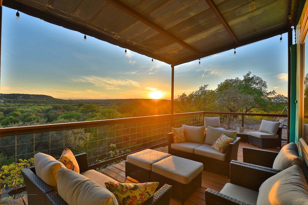Quiet and peaceful setting overlooking Elm Valley just 9 min from Buffalo Gap. The fully renovated railcar and caboose are connected by a large back patio that boasts one of the most spectacular views in Taylor County. The railcar is the larger of the two and has a king size bed, walk in shower, full kitchen, and living area. The caboose has a queen size bed, small living area, half bath, mini fridge and coffee bar. Smart TVs and WI-FI in each. Relax and unwind at this one of a kind retreat.