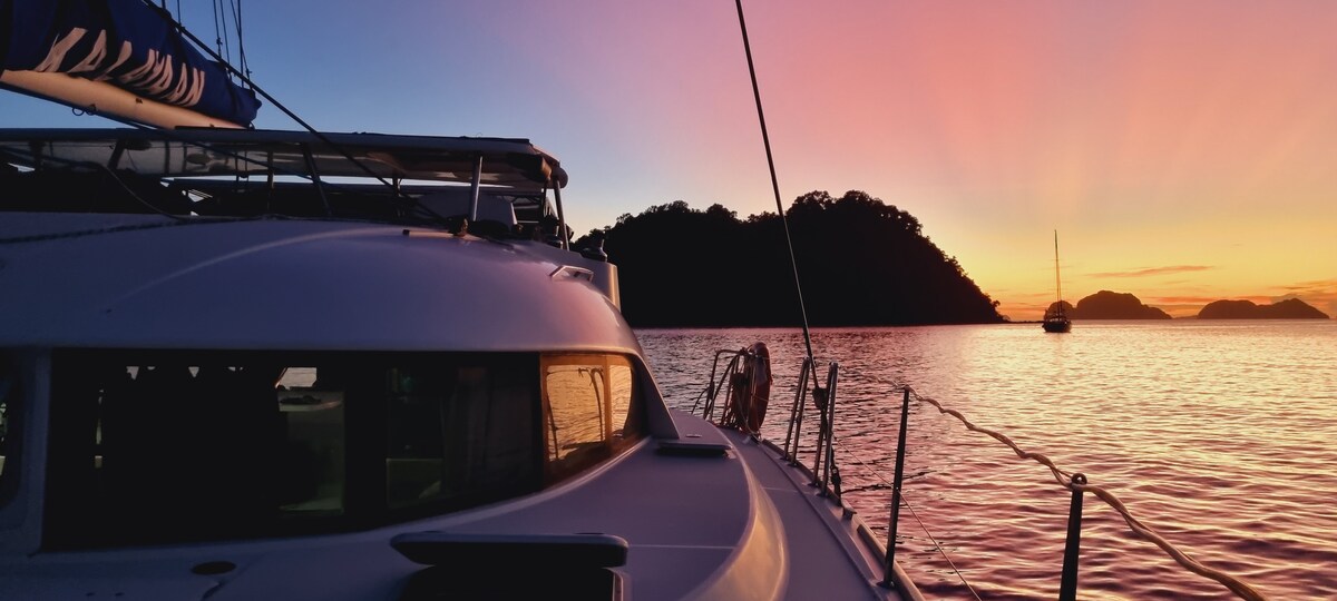 Welcome aboard Sailing Yacht Kalayaan (Freedom), The Yacht is 38ft (12m) owners version Lagoon 380 Sailing Yacht or better still a very stable twin hull vessel known as a Catamaran. The yacht will remain stationary on anchor or mooring (Unless otherwise arranged) with the ocean literally at your back steps. Should you wish to go ashore to the local beach or head into town for supplies a crew member will transfer you in the vessels small boat.