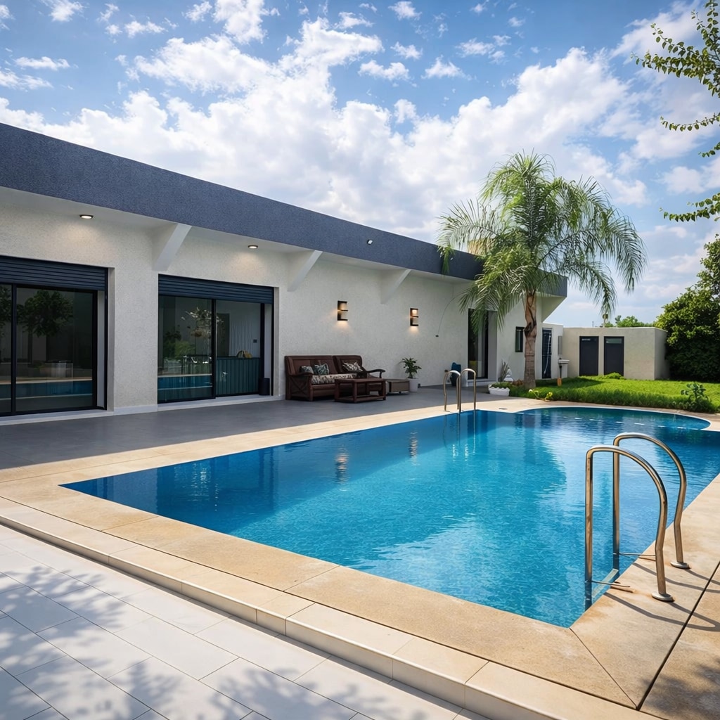 Découvrez votre coin de paradis dans un résidence sécurisée avec camera et gardien. L’hypercentre n'est qu'à quelques instants. - Villa lumineuse et moderne - un jardin avec piscine et terrasse - A 20min de l’ancienne médina - A 10mn du centre ville - À 2 min des magasins … Besoin d’une voiture ? Tarifs avantageux pour la location d’une voiture. Cuisinière disponible sur demande. - villa 420 m² - au RDC 3 grands espaces salons et une cuisine équipée. - 5 chambres et 4 SDB - Parking