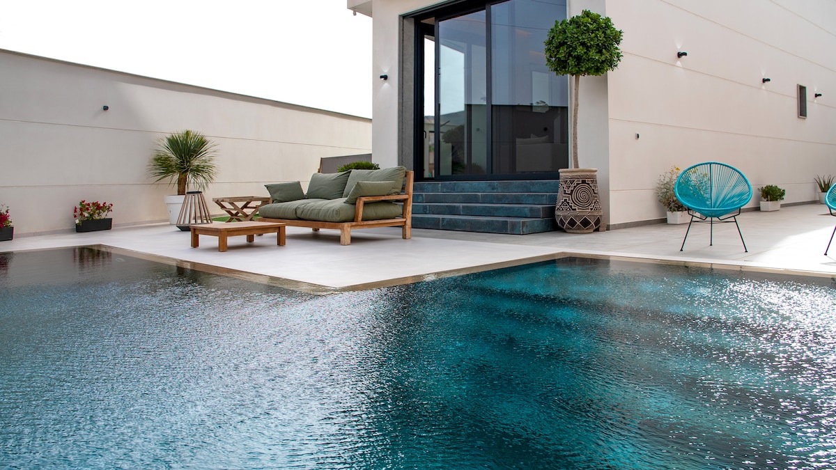 🤩 Piscine sublime et SANS VIS À VIS (option chauffée de avril à fin octobre) 🛁 Suite SPA JACUZZI en option 🚿5 salles de bain 🧑🧑🧒🧒 Grande capacité (x15) : 6 chambres 🛏️ Literie de haute qualité 🏋️ Matériel de sport 🛜 Fibre 📺 6 TV et IPTV (Netflix, beinsport…) ❄️ ☀️6 Climatisations chaud/froid 🚗 Garage 3 vehicules 🎮 Trampoline/PS5 📍Commodités/ en face Aéroport Glovo (Uber Eats) - InDrive (Uber) 🫡 Services : Coursier & Ménage ☕️ Petit déjeuner et repas en option