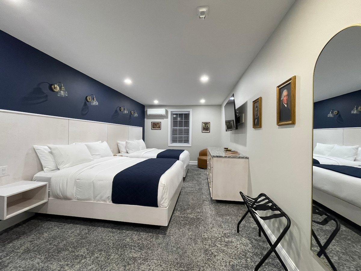 The whole group will enjoy easy access to everything from this centrally located place. There are three bedrooms, two with King beds and one with 2 doubles. A sparkling private bathroom with tiled shower. Also a full kitchen, living/dining room, and washer/dryer located in the suite. Located on the first floor with just a few steps to the front door. Across the Street from Back of the Dragon!