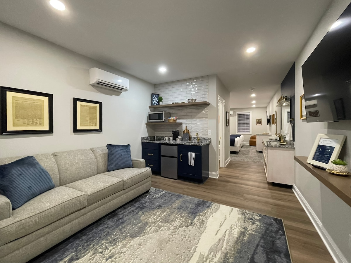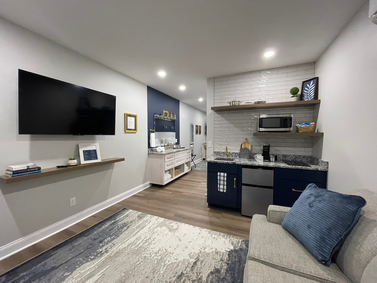 Welcome to our cozy, partially accessible suite, offering comfort and convenience for every guest. With wider entryways and minimal steps, it provides improved mobility while maintaining a warm, home-like feel. The suite includes a comfortable sleeping area and essential amenities to ensure a relaxing stay. Conveniently located close to town, you’re just minutes from shopping, restaurants, and local attractions making it easy to explore or pick up anything you need during your visit.