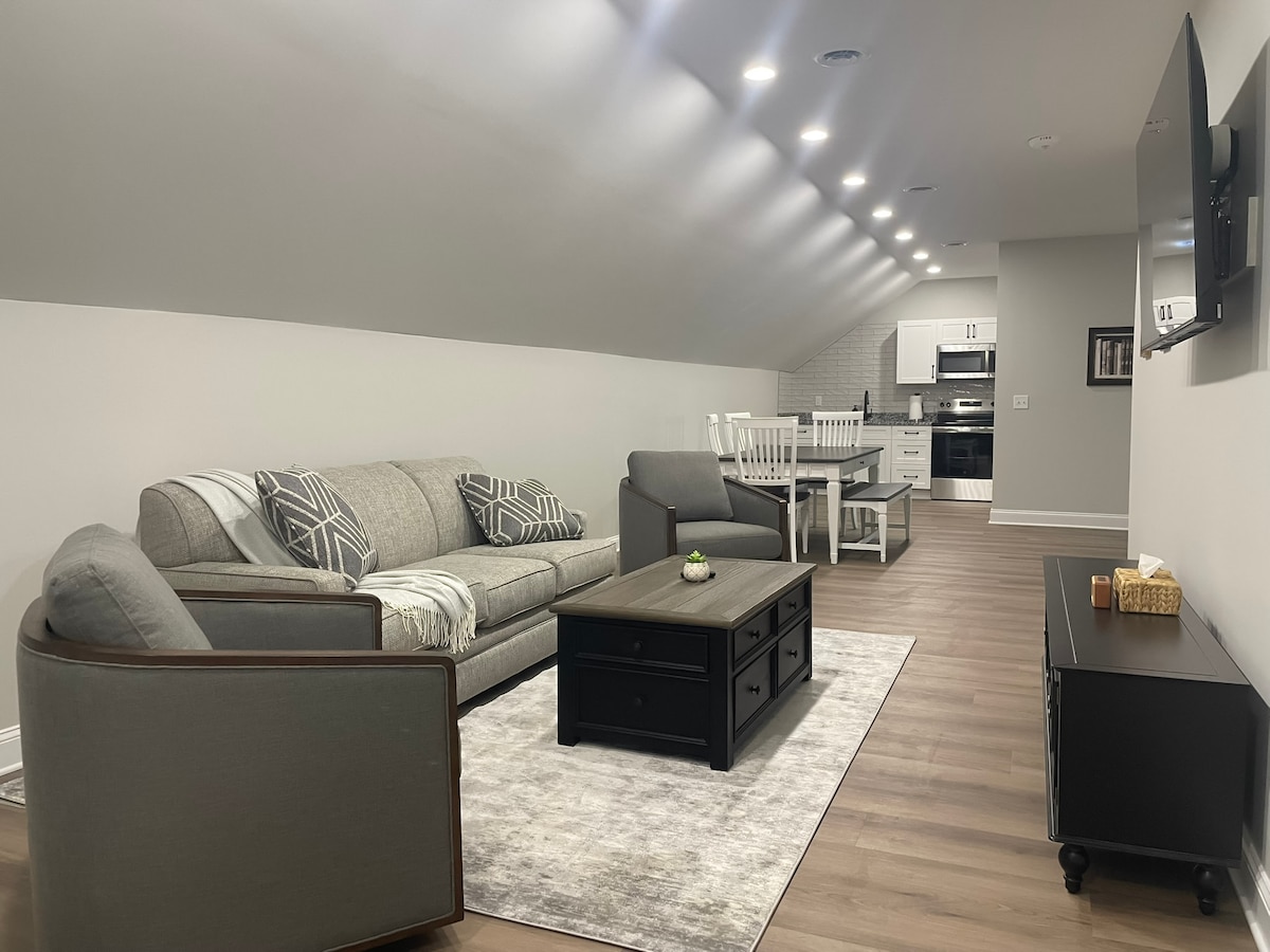 This is Lodge unit (A), one of our 3 unit lodges at Pinnacle Place ATV Lodging. Pinnacle Place is perfectly located between Bluewell and Bramwell WV. Less than 2 miles to the Hatfield & McCoy Pocahontas Trail. We are pet friendly (w/owner approval and additional $25.00 pet fee). Strong WiFi, Very close to convenience stores, ATV rentals, gas, groceries, food, car wash, and more. Lodge (A) is beautiful and fully furnished 2 BR, 1 bath, large open kitchen/dining/living area. Plenty of parking.