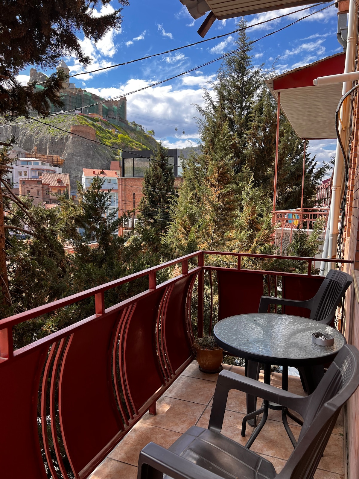 Stay in a unique and cozy house just steps from Fabrika, the metro and the train station. Experience real local life in Tbilisi, surrounded by supermarkets and friendly street vendors. The highlight is the spacious terrace with breathtaking panoramic views of the city — the perfect spot to relax and enjoy Tbilisi from above.