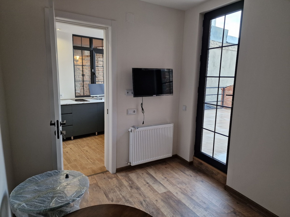 Step into modern comfort in the heart of Tbilisi, where city views and stylish design come together. This pristine space features a spacious bedroom, a sleek modern bathroom, and a private terrace with stunning views of the city — the perfect spot to enjoy your morning coffee or unwind in the evening. Perfect for solo travelers, couples, or business guests looking to experience Tbilisi in style and comfort. Enjoy the perfect blend of city life and luxury right at your doorstep!