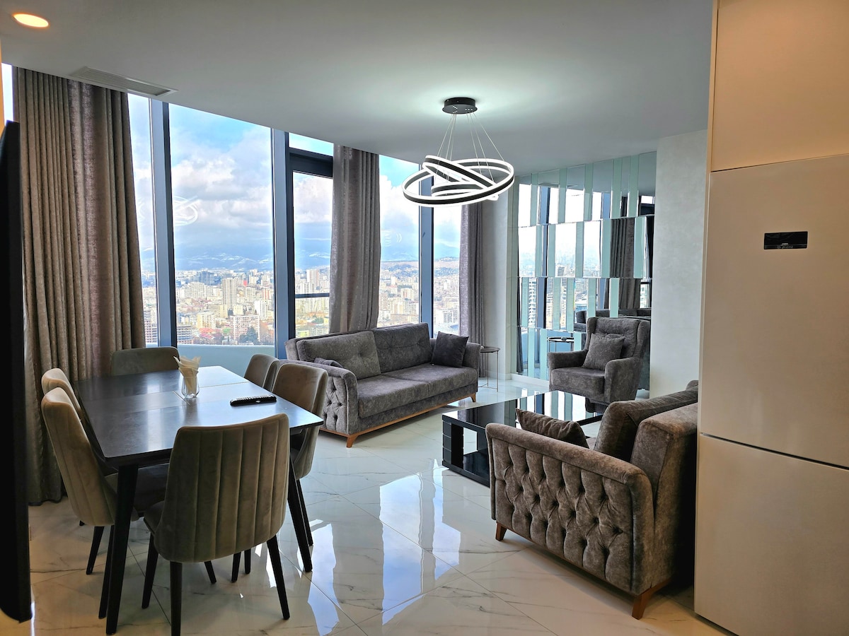 The apartment that you are guaranteed to love! Discover comfort and luxury in this centrally located 20th-floor apartment in Tbilisi. Enjoy panoramic views from both your bed and living area. With premium amenities and additional services within the complex, your stay is sure to be unforgettable. **Please keep in mind that access to the pool and the fitness club is only possible by paying the Axis Towers Wellness Center membership fee.**