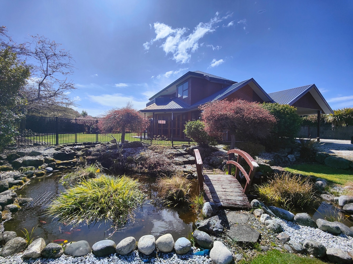 Gather, relax, and explore at Grand Getaway Te Anau. This modern 4-bedroom home features spacious living areas, a huge backyard with fish pond, play house, BBQ and fire pit. Inside, you’ll enjoy contemporary furnishings, generous bedrooms, and everything you need to enjoy a relaxing holiday in southern NZ. Located just moments from the heart of Te Anau, it’s the ideal base for families and friends exploring Milford Sound and Fiordland. Comfort, space and togetherness await at your Grand Getaway.