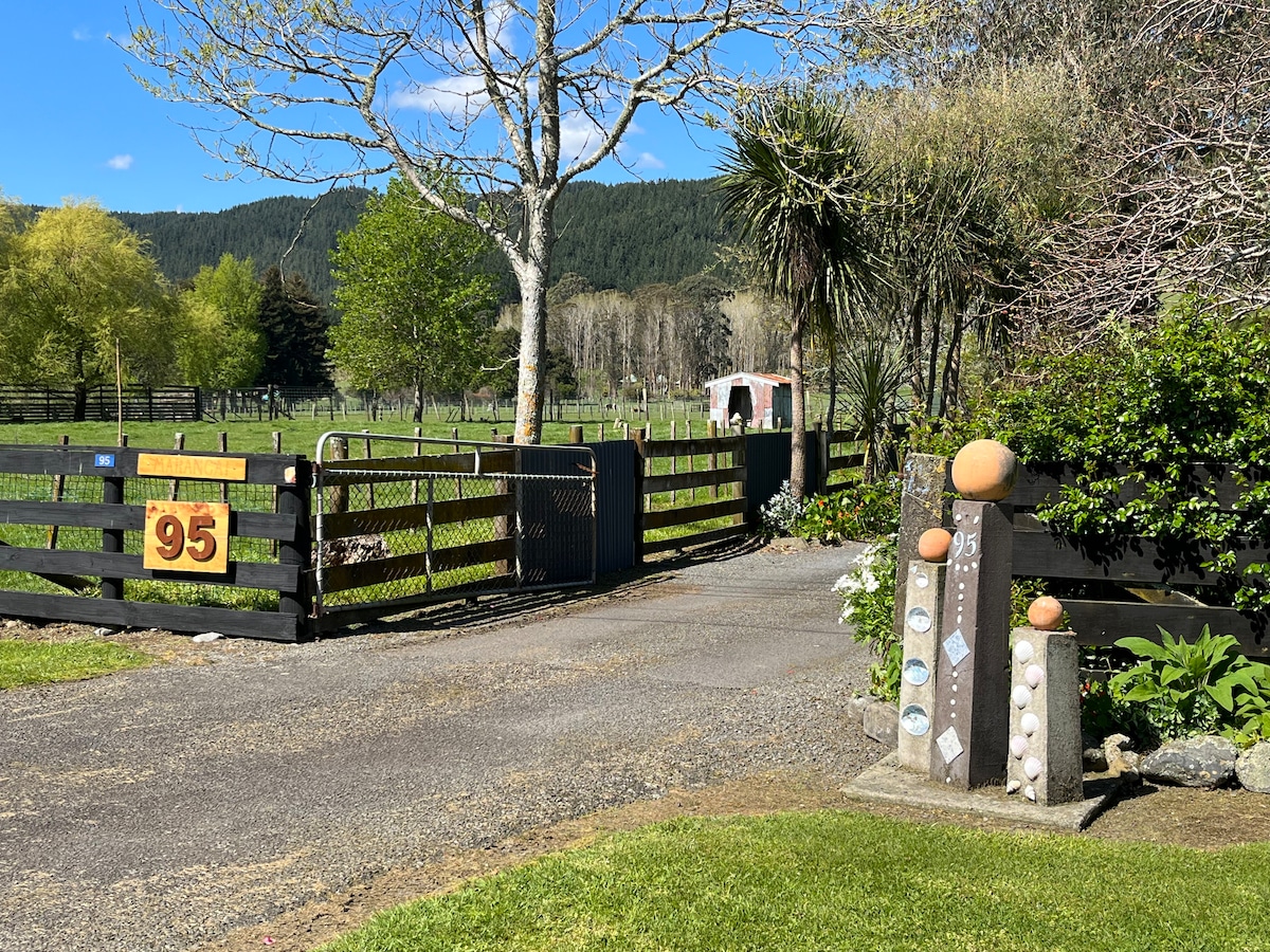 Adults-Only Private Getaway. In the countryside of Te Miro, in the heart of New Zealand's central North Island just 15 mins from Cambridge, featuring breathtaking views and spectacular sunsets. Our two-bedroom suite includes a lounge and dining area, luxurious bathroom, and private hot tub/jacuzzi. With its own private entrance, the suite is connected to one end of the owner’s residence yet remains completely secluded for your comfort and privacy. Not suitable for children under 13 yrs.