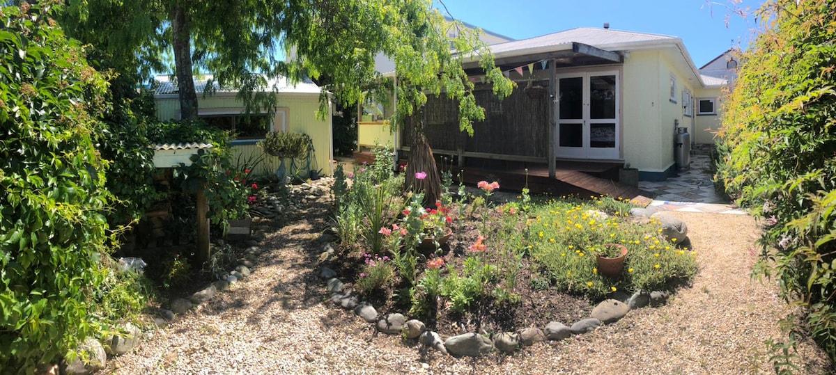 Welcome to our garden property just 100m from the main Takaka shops. The studio is large and cosy with its own bathroom. You will enjoy privacy with your own deck but we are always around for a chat and love meeting new people. There are no cooking facilities (but we do have a fridge, kettle, toaster etc so you can enjoy your morning coffee and muesli etc). You are just two minutes stroll away from some truly great cafes and restaurants - The Wholemeal Cafe is our favourite, open 7 days.