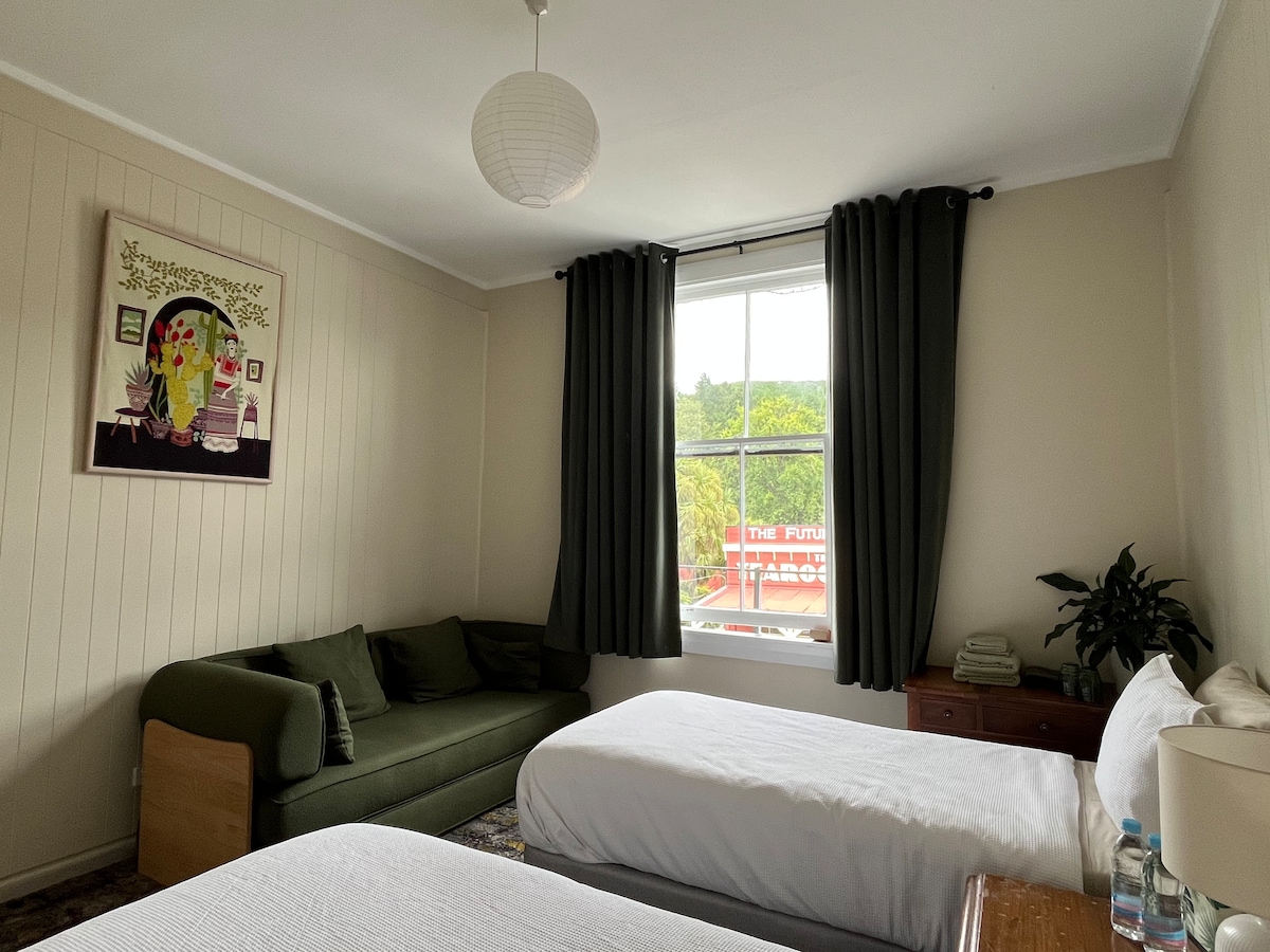 Room 3 has a view of historic Broadway. The hotel is situated on Broadway which is Reefton’s Main Street with shops, galleries, cafes and a Saturday market. Our historic hotel has been brought up to date while being sensitive to preserve any original features. We also have a ground floor restaurant serving everything from light bites to hearty meals. Our welcoming bar Also has food and coffees available all day