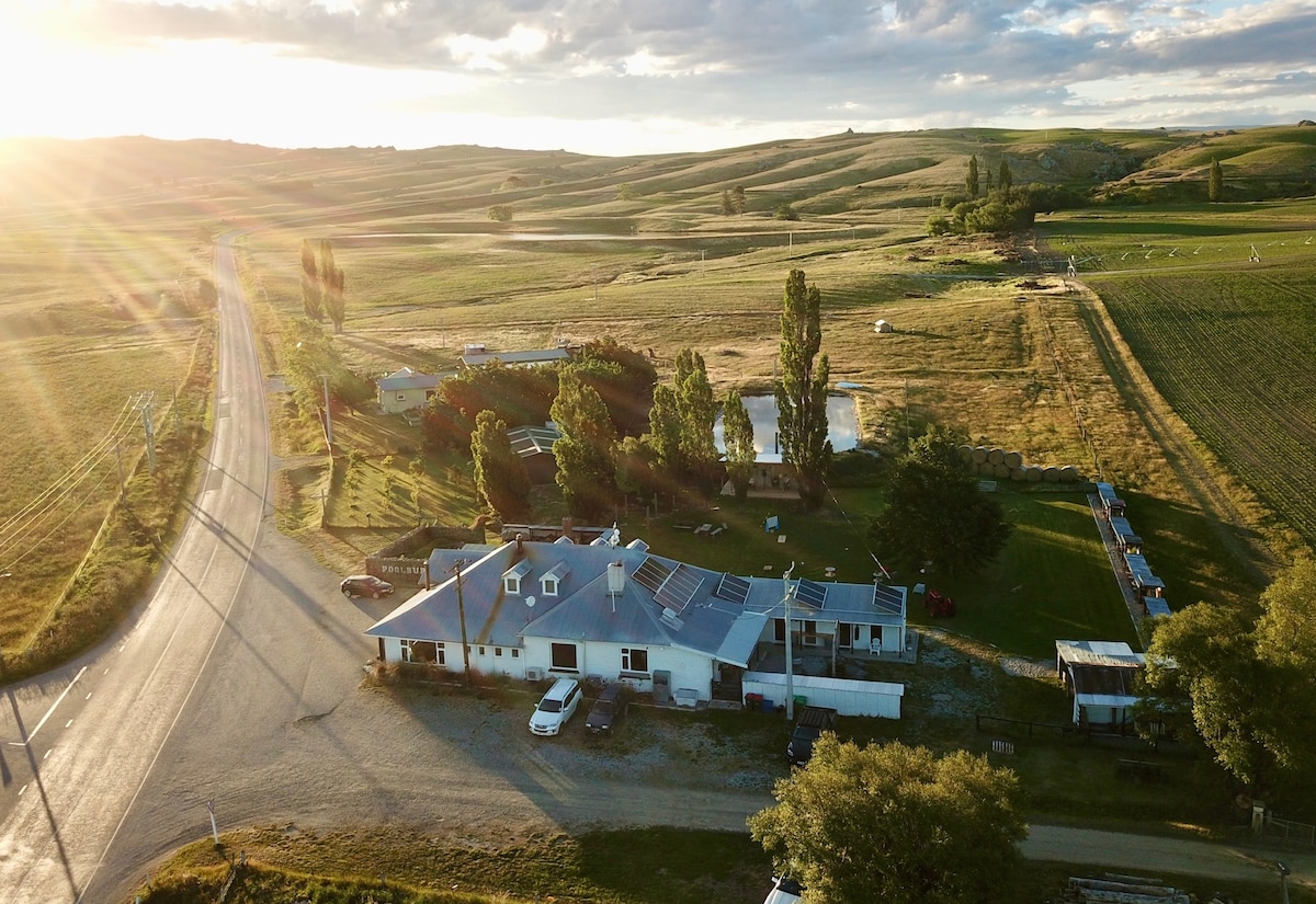 Since the 1920s the Poolburn Hotel has been the meeting place of the Ida Valley. Nestled in the remote highlands of Central Otago, between Dunedin and the Lakes District, the valley is home to a close-knit farming community. No longer a pub, we now offer lodging and activities to adventurers from afar. Please send a message if you have any special requirements or dietary restrictions. For larger groups, we have other rooms, just contact us for more details.