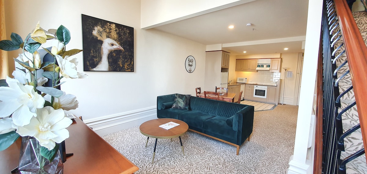Spacious one bedroom apartment in the Grand Old Government Building - located at 28 to 30 Cathedral Square, right beside the iconic Cathedral, with a secure carpark, pool & gym. Open plan living area and unlimited Wifi and a smart TV. Full kitchen with oven, hob & dishwasher. Separate bedroom with luxurious king bed & TV. Ensuite bathroom with shower over the bath.Washing machine & dryer.Bar in the building and minute walk to shops. I have another 2 suites in the building.