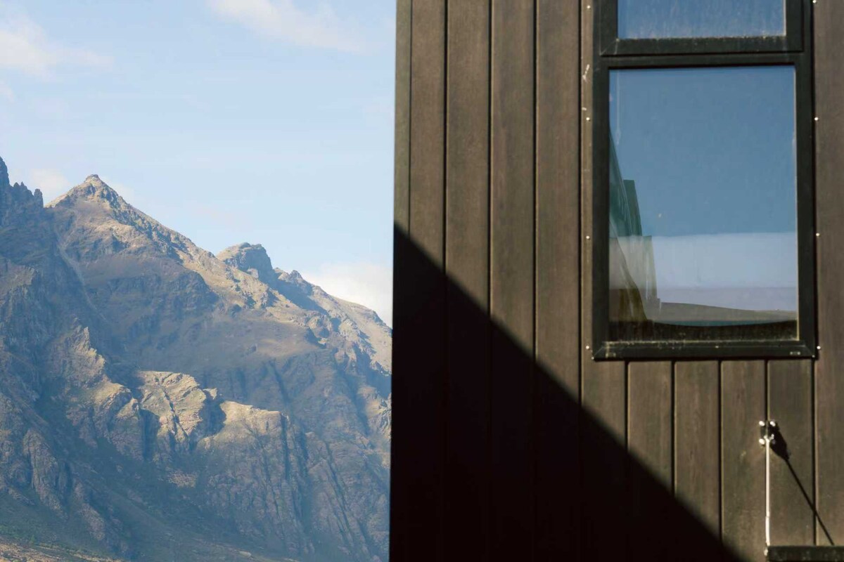 brand new two bedroom unit clad in Corten steel is located in an elevated position overlooking the picturesque Queenstown mountains. Drenched in all-year, all-day sun, you’ll relax with the majestic countryside panoramas and watch the sun set over the mountains. Fully self-contained, with free internet, this is the perfect accommodation for a relaxed country holiday, centrally located between Arrowtown, Frankton and Queenstown. You can relax in the spa and take in the spectacular views!